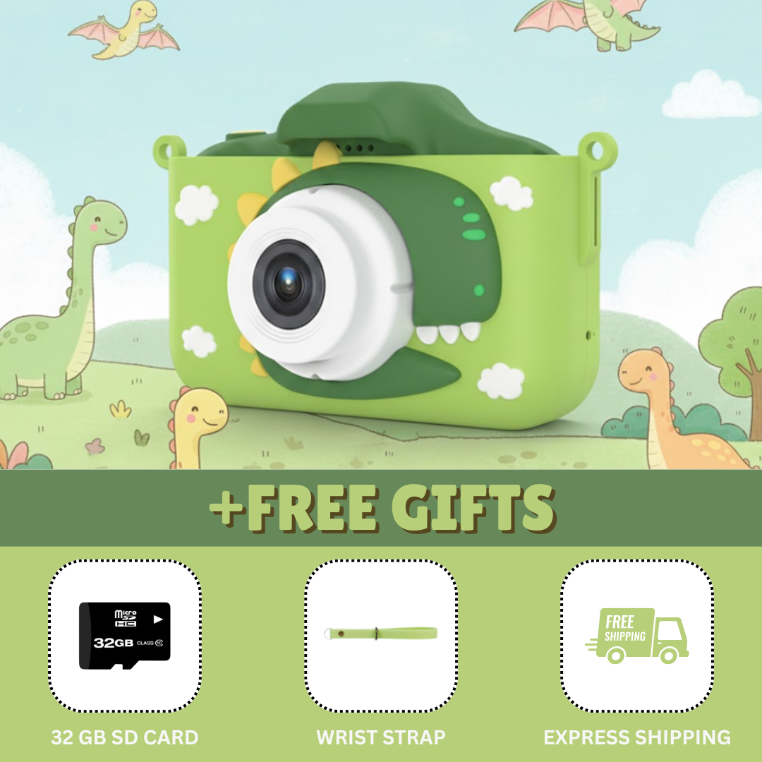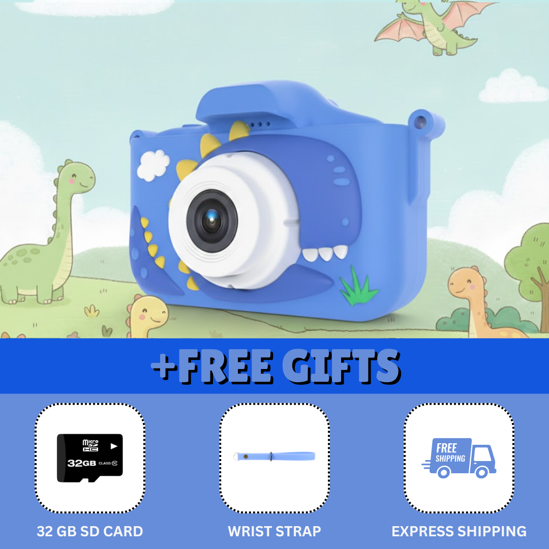 You’ll receive the kids’ camera, 32GB SD card, charging cable, wrist strap, user manual, and card reader.